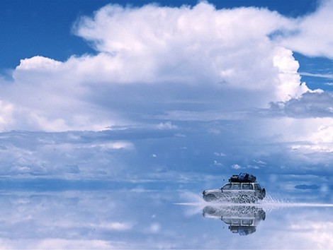 Situé à plus de 3 600 m d’altitude, sur les hauts plateaux de la Bolivie, le Salar de Uyuni est le plus grand désert de sel du monde. Formée suite à l’asséchement d’un gigantesque lac préhistorique, cette étendue blanche de 12 500 km² offre également l’un des paysages les plus « extra-terrestres » qu’il puisse être donné de contempler. Lorsque le Salar est recouvert d’eau, sa surface devient réfléchissante comme un miroir, et il devient presque impossible de dire où s’arrête le sol et où commence le ciel. Les rares objets visibles à l’horizon donnent l’impression de flotter dans l’air, et les visiteurs ont souvent l’impression d’être perdus au milieu d’un océan blanc, sans point de référence. Au centre du Salar, on peut voir des « îles » couvertes de cactus géants, vestiges de volcans submergés durant la préhistoire, comme l’île d’Incahuasi. Les touristes venus apprécier ce paysage irréel peuvent même trouver des hôtels dans la zone, entièrement fabriqués en blocs de sel du fait de l’absence de matériaux de construction, et de la distance des villes. Hormis ses réserves de sel quasi illimitées, le Salar de Uyuni contient 50 à 70 % du lithium exploitable sur la planète. On estime qu’avec la production toujours grandissante de batteries d’appareils portables et de voitures hybrides, la demande de lithium devrait tripler durant les 15 prochaines années, ce qui pourrait bouleverser l’avenir de la Bolivie, aujourd’hui pays le plus pauvre d’Amérique du Sud.