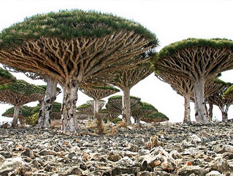 Au Nord-Ouest de l’Océan Indien se trouve une île qui redéfinit toute notion de paysage « terrestre ». Située à 350 km des côtes du Yemen, l’île de Socotra est la plus grande de l’archipel qui porte son nom. Elle fut détachée du continent Africain il y a 6 millions d’années, et cet isolement géologique a donné naissance a une biodiversité phénoménale : Socotra abrite 800 espèces de plantes rares dont un tiers sont endémiques, ce qui signifie qu’elles n’existent nulle part ailleurs sur la planète. Parmi les spécimens les plus étranges, on trouve notamment l’arbre concombre, le figuier de Socotra et son aspect improbable, ou encore l’arbre Sang de Dragon, dont la sève rouge servait de teinture et d’onguent magique dans l’antiquité. La faune n’est pas en reste et compte plusieurs espèces d’oiseaux uniques au monde. Les 42 000 habitants de l’archipel parlent le soqotri, une langue non-écrite, et leur mode de vie est encore très traditionnel : la première route n’a été installée qu’en 2008 par le gouvernement Yéménite. C’est d’ailleurs suite à ce projet controversé que Socotra à été inscrite au patrimoine mondial de l’Unesco, afin de limiter le développement des infrastructures, et garantir la préservation des trésors naturels de l’île.