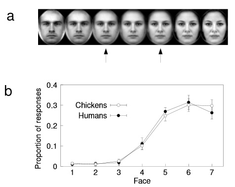 Visages utilisés et comparaison des réponses. Copyright Ghirlanda/Jansson/Enquist