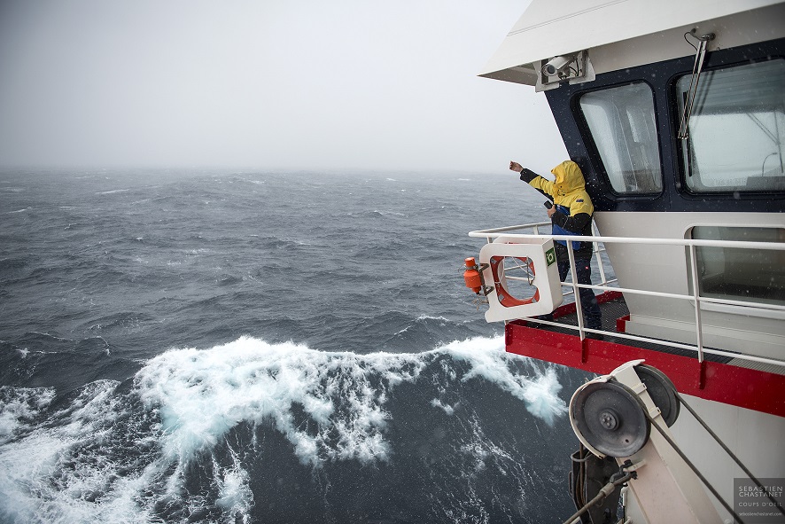 Lorsque nous étions à 2 000 km de l’Antarctique, lors de l’expédition Swings, nous les avons rencontrées. Nous les avons mesurées et échantillonnées grâce à des sondes. Ces eaux avaient été mesurées une dizaine d’années auparavant, et elles ont augmenté en température. Ceci en raison de la fonte des icebergs qui dessale légèrement les eaux côtières le long des côtes de l’Antarctique. Par conséquent, les eaux qui vont couler et circuler vers le nord, où nous les avons mesurées, vont avoir un point de congélation plus élevé ce qui explique leur léger réchauffement mesuré. Plus à l’ouest, sur la côte de la péninsule Antarctique au large de la Terre de Feu, l’eau s’est réchauffée 7 fois plus que les eaux autour ces dernières années, c’est énorme. On commence à voir par exemple un remplacement d’un certain type d’algue par un autre dans cette région.