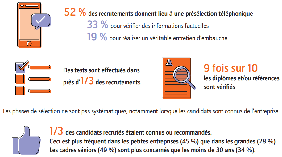 1 400 entreprises représentatives du secteur privé de plus de 50 salariés, selon le critère des effectifs cadres par secteur d’activité ayant recruté au moins un cadre au cours des 12 derniers mois. Elles ont été interrogées par téléphone, en janvier et février 2017 par l’institut BVA. Les résultats de cette synthèse sont issus de deux documents d’études : Sourcing cadres édition 2017 et Les progiciels de recrutement en 2016 : quel équipement, quels usages ?