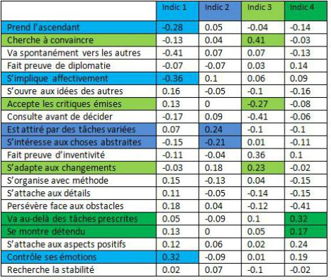 Ici, le tableau montre la corrélation entre traits de personnalité et performance.