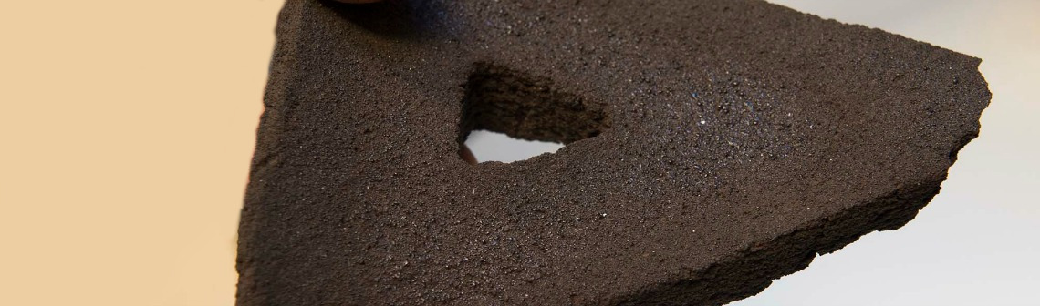 Les briques ont été fabriquées à partir de poussières de roches volcaniques terrestres simulant la taille des grains et la composition de la poussière lunaire. Sur une table d’impression 3D à laquelle est couplée un four solaire, de fines couches du matériau de 0,1 mm sont cuites à 1000°C jusqu’à obtenir la forme désirée.