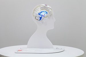 C’est une technologie invasive, mais qui nécessite une intervention moyennement invasive pour un neurochirurgien. La partie batterie/simulateur se situe sous la clavicule. Les câbles sont également passés sous la peau. On réalise une trépanation pour mettre à la place de l’os le boîtier optique, d’où sort une fibre optique introduite dans le cerveau. La fibre optique va principalement descendre dans les ventricules du cerveau, sans léser de tissus. On arrive à quelques millimètres de la zone à protéger. On est dans un couloir naturel, donc c’est bien moins invasif que traverser uniquement du tissu cérébral.