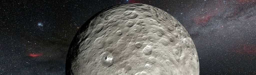 Cérès est le corps le plus volumineux de la ceinture d’astéroïdes située entre Mars et Jupiter et le seul objet de ce type classé parmi les planètes naines. La sonde spatiale Dawn de la NASA est demeurée en orbite autour de Cérès durant plus d’une année et a livré une cartographie détaillée de sa surface. La découverte de taches très brillantes, qui réfléchissent bien plus de lumière que le reste de la surface, beaucoup plus sombre, a constitué l’une des plus surprenantes découvertes. La tache la plus étendue occupe le centre du cratère Occator et suggère que Cérès présente une activité interne nettement plus importante que la plupart de ses voisins de la ceinture d’astéroïdes.