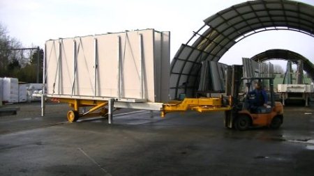 - Auwärter et A2C, pour le Transmob (ensemble logistique complet facilitant le transport des ossatures bois) : Les semi-remorques à plateaux amovibles et châssis surbaissé conçues par Auwärter facilitent le transport et le stockage des ossatures bois. Toutefois, il manquait encore un maillon à la chaîne logistique, afin de permettre la récupération des plateaux quel que soit l’encombrement. Le Transmob, nouveau transpalette géant et télescopique, a donc été imaginé à cet effet. Introduit sous le plateau puis dirigé à l’aide d’un chariot élévateur, il peut déplacer jusqu’à 24 tonnes à différentes hauteurs, grâce à ses vérins hydrauliques.
