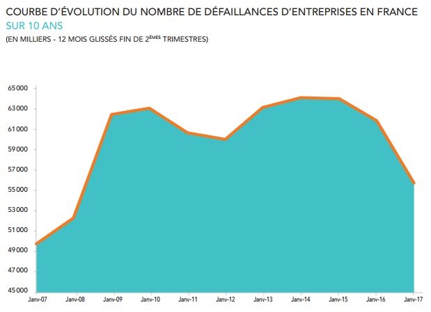 Au deuxième trimestre 2017, l'économie française confirme son redressement. Près de 13.000 défaillances d'entreprises ont été enregistrées ces trois derniers mois en France. Ce chiffre est en baisse de 7,8% par rapport au même trimestre de 2016. Décryptage.