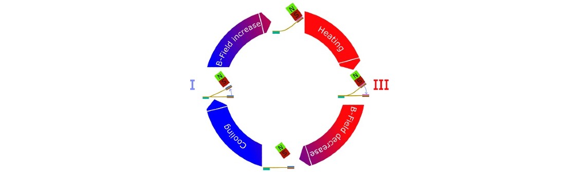 Dans une publication pour la revue Joule, l’équipe de chercheurs composée de membres de l’Institute of Microstructure Technology (IMT, Allemagne) et de la Tōhoku University (Japon) explique le fonctionnement de cette solution. Leur solution exploite les changements d’aimantation aux températures critiques des alliages de Heusler, des matériaux dont les propriétés magnétiques dépendent fortement de la température (coefficient ΔΜ/ΔΤ). Ces changements d’aimantation induisent un courant électrique dans une bobine, suivant le principe de l’induction.