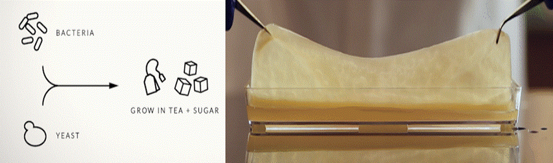 Cette fois-ci, les chercheurs ont utilisé le SCOBY, une culture symbiotique de levures et de bactéries, une substance gélatineuse et épaisse (aussi appelée « mère ») couramment utilisée pour produire par fermentation des aliments et des boissons acides telles que le kombucha.