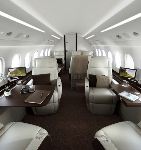 La cabine intérieure n’est pas seulement plus haute, et plus large que celle des avions concurrents, elle intègre également de nombreux équipements traditionnellement proposés en option. La cabine présente une configuration d’aménagement idéale pour 10 passagers. L’espace intérieur, le mobilier et les équipements ont été conçus en partenariat avec BMW Designworks USA. 3 harmonies de couleurs et de matériaux différentes sont proposées aux clients.
