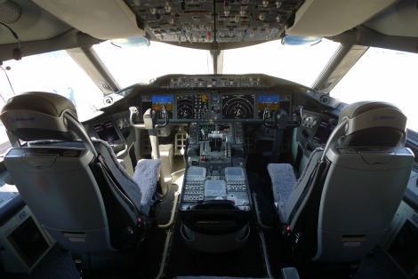 Le cockpit du 787 est somme toute très classique et similaire à celui du Boeing 777, ce qui réduira sensiblement le temps d’apprentissage pour permettre aux pilotes de faire la transition entre les deux avions.