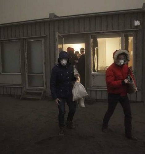 Ces touristes sont équipés de masques afin de ne pas respirer les particules de cendres