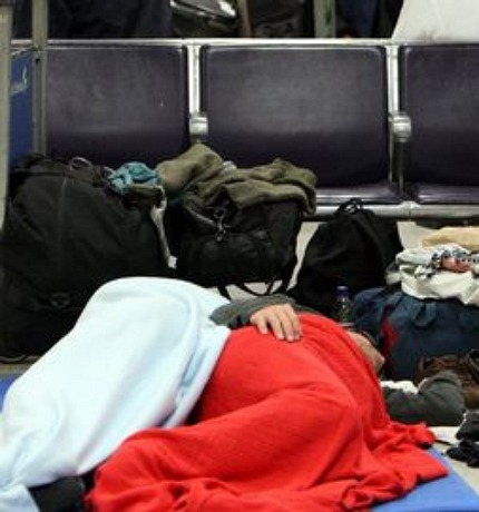 Des passagers, dont les vols ont été annulés, dorment à l’aéroport d’Édimbourgh (Écosse)