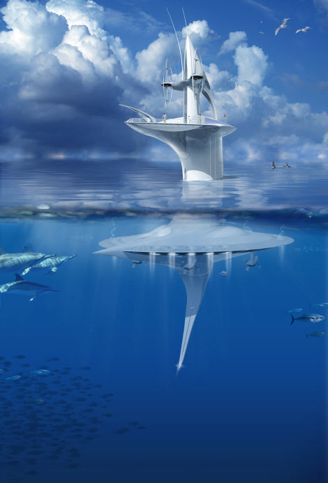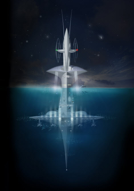 SeaOrbiter est une nouvelle aventure humaine créée par Jacques Rougerie au service de la Planète. Le vaisseau, mi-immergé, se déplacera principalement en suivant les grands courants océaniques marins.
