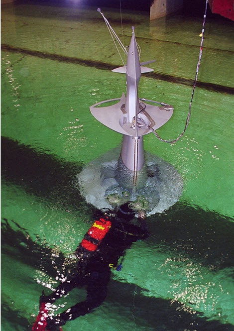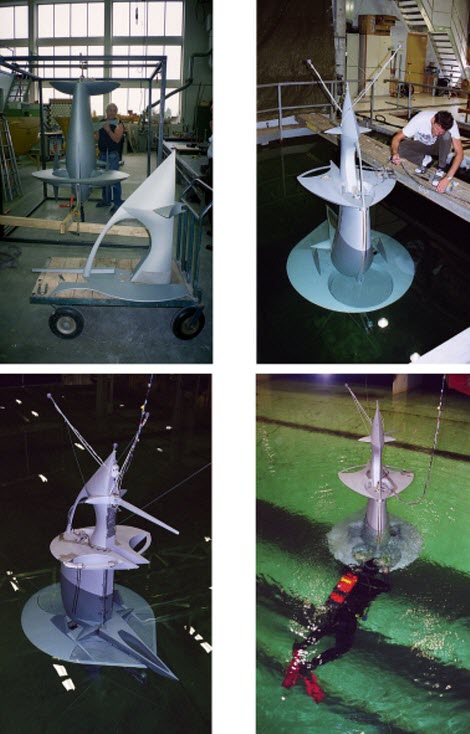 Les tests sur des modèles réduits ont été menés pendant de longs mois en piscine pour parfaire la flotabilité de l’ouvrage et son comportement dans les courants.
