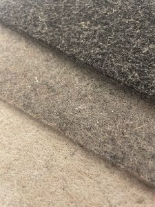 Nous travaillons ainsi principalement trois fibres naturelles : le lin, le chanvre et le kenaf[1], une fibre principalement produite au Bangladesh. Attractive sur le plan économique, ses caractéristiques écologiques et techniques moindres nous poussent à mettre davantage l’accent sur les fibres de lin et de chanvre, produites quant à elles très majoritairement en France.