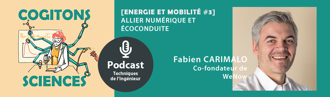 Bienvenue dans le sixième épisode de Cogitons Sciences, le podcast qui décrypte les enjeux des sciences ! Notre invité Fabien Carimalo, cofondateur de la Greentech française WeNow, explique le fonctionnement de la solution numérique éponyme d’aide à l’écoconduite, et comment elle peut aider à réduire l’empreinte carbone des véhicules.