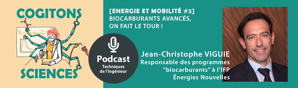 Bienvenue dans le cinquième épisode de Cogitons Sciences, le podcast qui décrypte les enjeux des sciences ! Notre invité Jean-Christophe Viguié, responsable des programmes “biocarburants” à l’IFP Énergies Nouvelles (IFPEN), fait le portrait des biocarburants avancés présents sur le marché automobile français et détaille leurs technologies de production.
