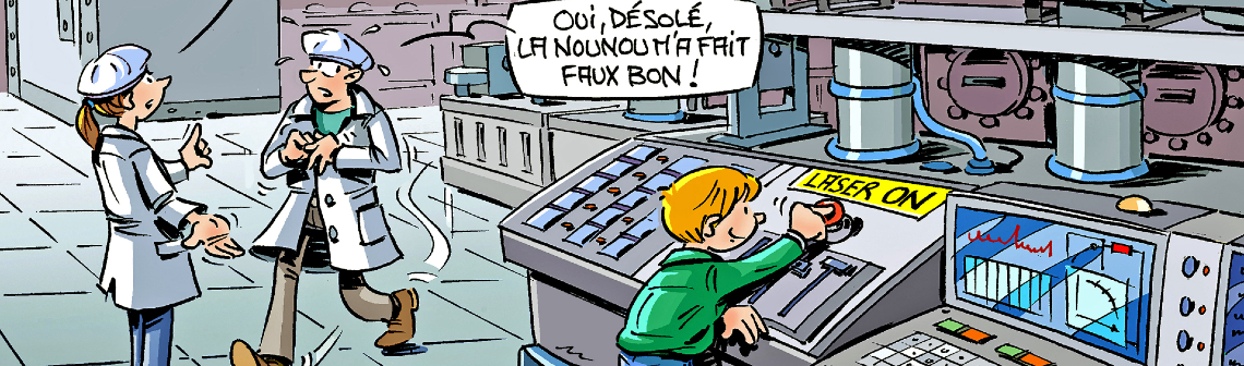 Chaque mois, le dessinateur Hubert Blatz croque l'actualité... Ce mois-ci, l'infrastructure de recherche APOLLON est notamment remarquable par son laser qui figure parmi les plus puissants au monde. Cette installation permet de reproduire des mécanismes astrophysiques et de comprendre la création des éléments lourds de l’Univers.