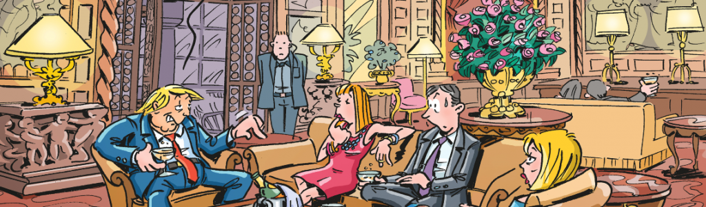 Chaque mois, le dessinateur Hubert Blatz croque l'actualité... Donald Trump prend ses fonctions ce 20 janvier, mais le futur président des Etats-Unis se positionne déjà et notamment en faveur de TikTok. Pour rappel, ByteDance, la saison mère chinoise du réseau social doit être rachetée par de nouveaux investisseurs non chinois avant le 19 janvier, sans quoi elle sera interdite aux Etats-Unis