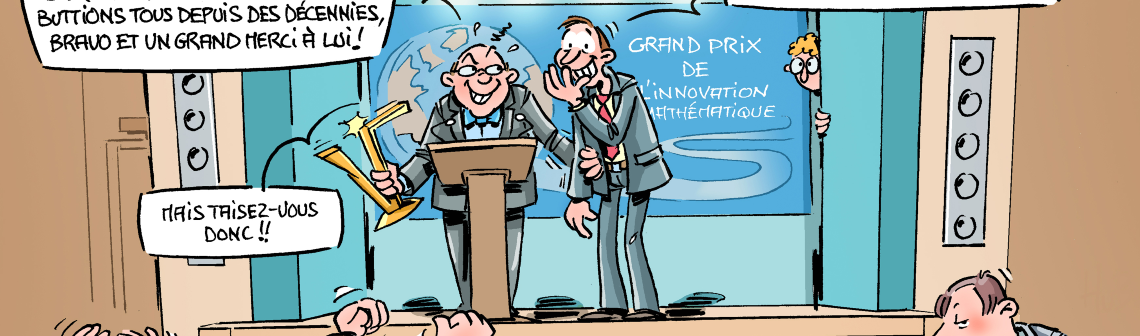 Chaque mois, le dessinateur Hubert Blatz croque l'actualité... Le mathématicien Norman Wildberger et son équipe de l'Université du New South Wales, en Australie, a trouvé la solution pour surmonter la complexité des équations polynomiales de degré supérieur. Leur découverte, la Géode, pourrait bien être la clé d'une nouvelle structure mathématique aux applications multiples, de la théorie des nombres à la biologie moléculaire.