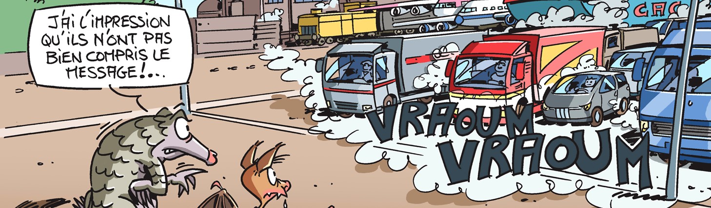 Chaque mois, le dessinateur Hubert Blatz croque l'actualité... Ce mois-ci, la crise du coronavirus permet de s'interroger sur l'impact climatique de notre économie. Jusqu'à une transition plus verte ?