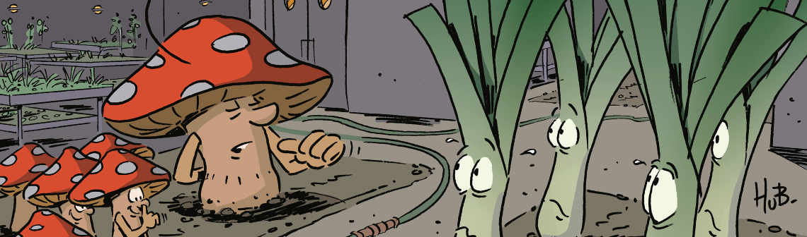 Chaque mois, le dessinateur Hubert Blatz croque l'actualité... Ce mois-ci, l'électro-agriculture se présente comme une solution aux aléas climatiques. Améliorant l'utilisation des ressources et de la production alimentaire, elle permet la culture sans lumière dans les régions urbaines mais aussi dans des zones arides.