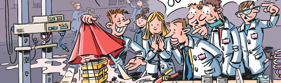 Chaque mois, le dessinateur Hubert Blatz croque l'actualité... Ce mois-ci, pour réduire l'impact de sites industriels, en alternative à des éoliennes ou des panneaux solaires, l'énergie pourrait être mieux redistribuée par le moyen de briques réfractaires. Cette solution, antédiluvienne et peu coûteuse, permet en effet de stocker de l'énergie sous forme de chaleur plutôt que sous forme d'électricité, évitant donc des batteries.