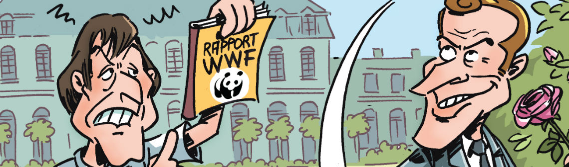 Chaque mois, le dessinateur Hubert Blatz croque l'actualité... Nicolas Hulot présente ce vendredi 18 mai son plan de bataille pour enrayer le déclin de notre environnement, un long combat...