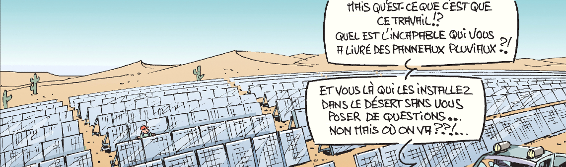 Chaque mois, le dessinateur Hubert Blatz croque l'actualité... Ce mois-ci, une équipe de chercheurs chinois de l’École supérieure internationale de Shenzhen de Tsinghua déclare avoir mis au point des panneaux permettant de produire de l'énergie électrique à partir de la pluie, grâce à des nanogénérateurs triboélectriques. Ils pourraient compléter les panneaux solaires.