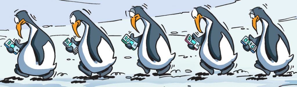 Chaque mois, le dessinateur Hubert Blatz croque l'actualité... Ce mois-ci, des chercheurs français et italiens ont établi que les manchots avaient une manière de communiquer similaire à celle des humains. Une bonne nouvelle?