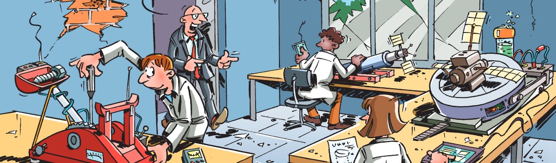 Chaque mois, le dessinateur Hubert Blatz croque l'actualité... Ce mois-ci, la start-up américaine SpinLaunch teste l'envoi de satellites par une catapulte géante.