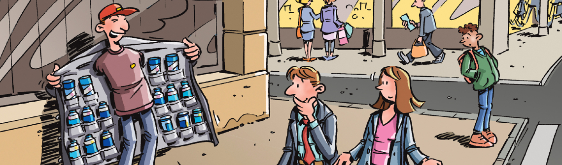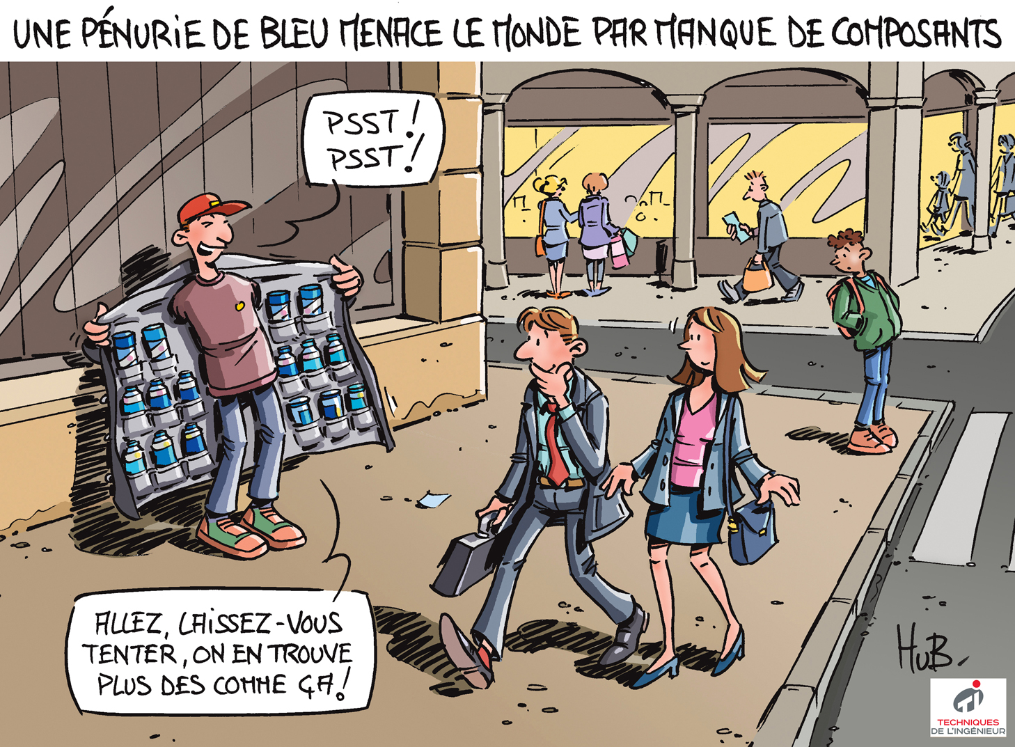 Chaque mois, le dessinateur Hubert Blatz croque l'actualité... Ce mois-ci, Akzo Nobel, fabricant de peintures néerlandais, a déclaré manquer des ingrédients de base pour fabriquer la couleur bleue.