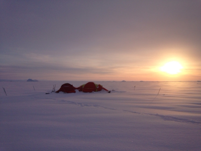 « Douzième jour d’expédition Sur les Traces de L’or Blanc, le moral des troupes est au top. On commence enfin à s’adapter à notre nouvel environnement : on supporte mieux le froid et on mange beaucoup.