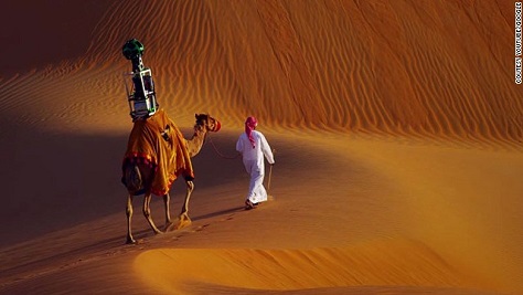 Google délaisse pour un temps la bonne vieille Google Street Car, et s'aventure à dos de chameau pour arpenter les dunes émiraties du Rub al-Khali, autour de l'oasis de Liwa.