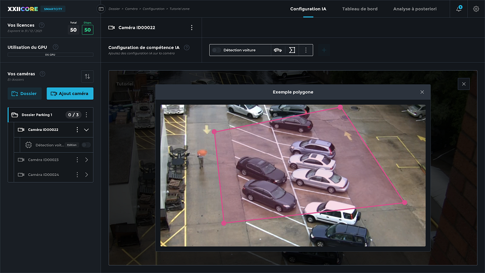 Petit à petit, la vision par ordinateur a pris plus d’ampleur dans l’entreprise, du fait de son existence dans l’écosystème et dans le marché. En 2019, nous avons ainsi commencé à penser un produit. Nous avons très naturellement construit la vision d’une solution très horizontale, qui aurait la capacité d’attaquer plusieurs secteurs de marché, dans un but d’agilité. Nos années passées à faire du service nous ont permis de construire un état de l’art, une étude de marché. En 2021, nous avons donc créé XXIICORE, une plateforme qui permet de déployer, d’optimiser les calculs et de proposer aux clients n’importe quelle solution en vision par ordinateur développée chez XXII. Tout cela de manière extrêmement facile et extrêmement peu coûteuse. Nous nous sommes très naturellement orientés vers les villes, vers la smart city, et en début d’année, nous avons complété notre solution autour des smart infrastructures, des infrastructures privées qui peuvent être liées à la ville. XXIICORE a aussi pour ambition d’être déclinable sur différents autres secteurs de marché : commerce, alimentaire, industrie, logistique… car nous avons déjà mené des projets dans ces secteurs et nous avons déjà identifié des cas d’usages à fort retour sur investissement.