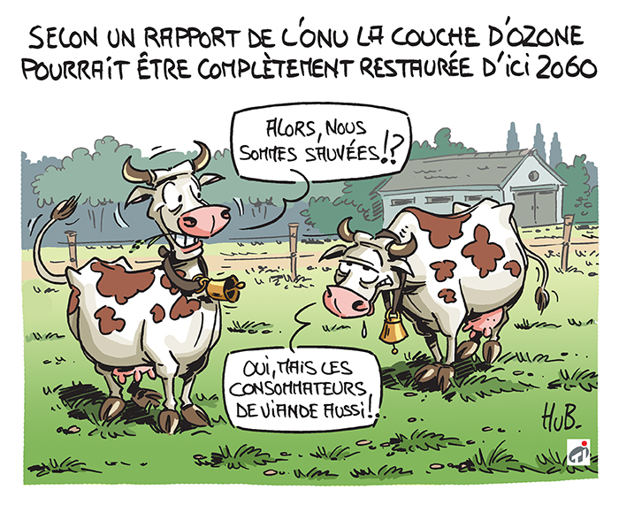 Chaque mois, le dessinateur Hubert Blatz croque l'actualité scientifique. Sorti en novembre, un rapport de l'ONU laisse à penser que la couche d'ozone pourrait être restaurée d'ici 2060.