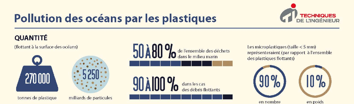 Il est aujourd’hui avéré que de grandes quantités de plastiques entrent chaque année dans nos océans, où ils se transforment et s’accumulent pour y rester des temps non encore définis. Mais d'où viennent-ils ? Quels en sont les impacts ? Y a-t-il des solutions ? Retrouvez l'infographie de Techniques de l'Ingénieur pour en apprendre plus.