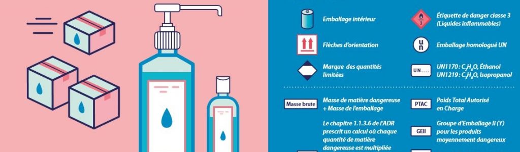 Si la mise sur le marché des GHA et SHA a été facilitée par le décret du 13 mars 2020, après le 31 mai 2020, les gels et solutions hydroalcooliques ne pourront plus bénéficier de cette dérogation. Notre infographie explique les différentes réglementations à respecter pour transporter ces marchandises.