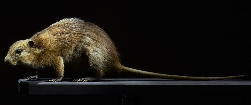 Photo de Une : Rat pilori de la Martinique (Megalomys desmarestii), espèce éteinte. Spécimen naturalisé exposé dans la Grande Galerie de l’Evolution au Museum National d’Histoire Naturelle, à Paris. Vassil, Creative Commons CC0 1.0