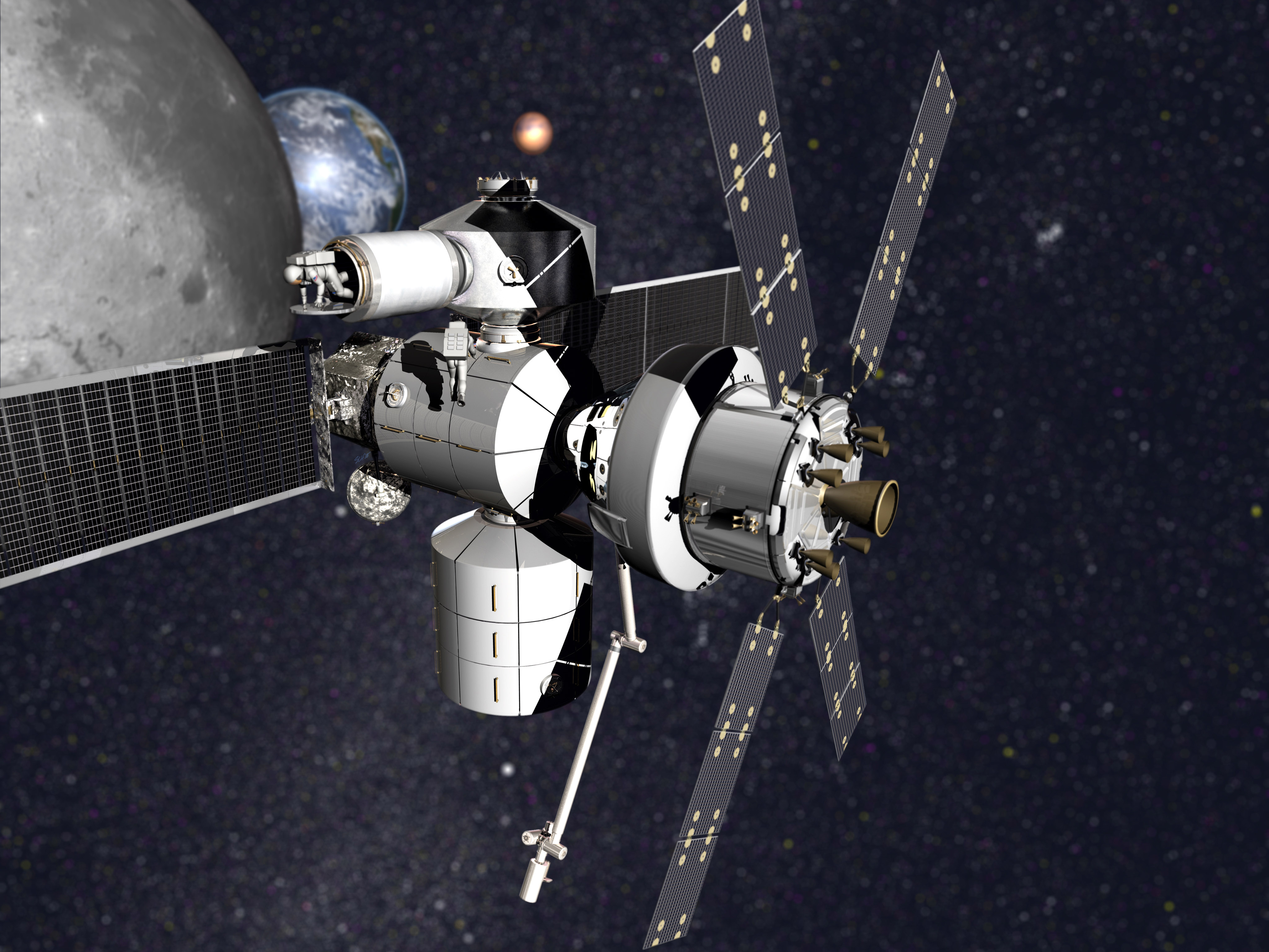 « Au-delà du lanceur spatial Space Lauch Systems (SLS) et du vaisseau spatial Orion, les prochaines capacités nécessaires pour l’exploration de l’espace lointain sont des habitations de longues durées et des systèmes de propulsion dans l’espace. Nous mettons à présent l’accent et voulons détailler les habitats pour l’espace lointain où les humains vont vivre et travailler de façon indépendante pendant des mois ou des années, sans livraison de matériel depuis la Terre », annonce Jason Crusan, directeur des systèmes avancés d’exploration à la NASA.