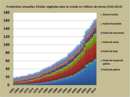 figure 1: Productions mondiales annuelles d’huiles végétales (FAO- Déc. 2013)