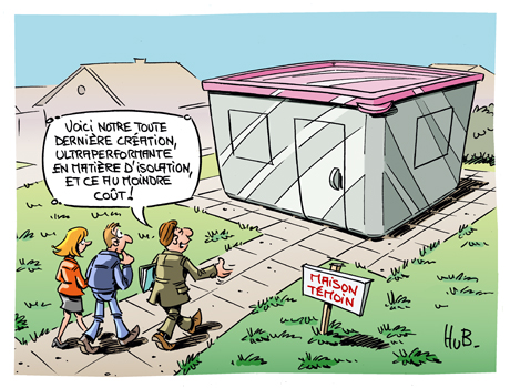 A l'occasion de chaque cahier thématique, Hubert Blatz, dessinateur, revient avec humour et malice sur les problématiques abordées par la rédaction. Ce mois-ci, nous nous intéressons aux nouveaux bâtiments écologiques...