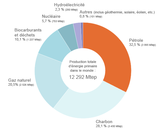 Source : Connaissance des énergies / AIE Le charbon pèse aujourd’hui 28,1% de l’énergie primaire mondiale (2009), contre 20,5% pour le gaz et 32,5% pour le pétrole. Le gaz naturel a le potentiel pour faire reculer rapidement le charbon, contribuant de facto à réduire la facture climatique. Mais aussi de faire reculer le pétrole : 13 millions de véhicules roulent dés à présent au gaz naturel dans le monde, notamment en Argentine, au Brésil, en Inde, au Pakistan et en Iran, et leur bilan en matière de santé publique est bien meilleur que celui des véhicules diesel.
