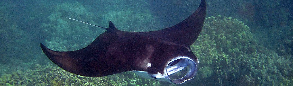 Le genre Manta est caractérisé par de grandes raies possédant une envergure minimale de 5,5 mètres. Et aux nageoires pectorales, triangulaires et très élargies, n’étant pas sans rappeler des ailes… Les raies les utilisent d’ailleurs d’une façon similaire à celle des oiseaux, leur corps aplati battant de ses « ailes » pour nager. Le résultat est très efficace ! En effet, il suffit aux Manta de deux battements à forte amplitude par seconde pour se projeter en avant à grande vitesse.