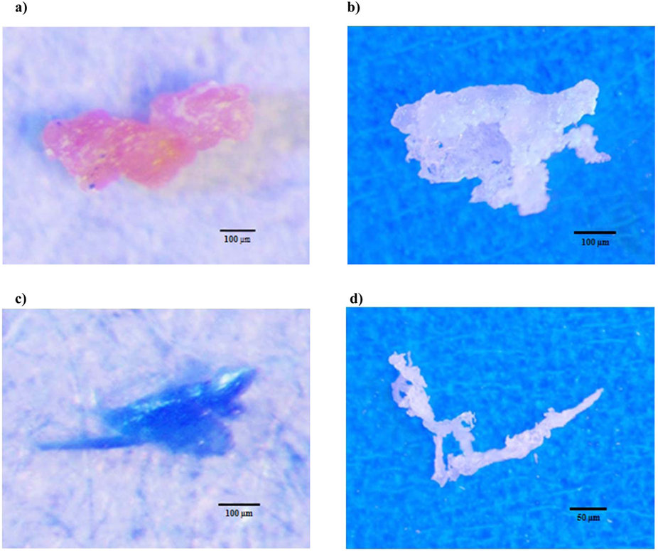 Les polymères plastiques les plus courants sont le polypropylène (40%) et le polyéthylène (33,3%). 63,8% des microplastiques sont des fragments de plastique (63,8%). Puis on trouve 25,6% de filaments et 10,6% de films. Aucune microbille de plastique n’a été isolée de ces échantillons.