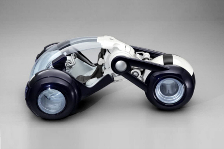 La RD est un véhicule monoplace à 3 roues électrique. Intelligent, il possède une aide vocale et affiche sur le pare-brise des informations liées au trajet.