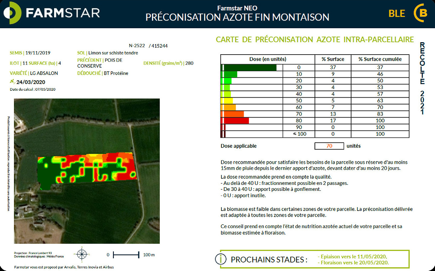 « La France est assez en avance sur l’agriculture de précision », note Emmanuelle Paganelli, responsable du service Farmstar au sein d’Airbus. Développé dans les années 1990 par Arvalis-Institut du végétal et Airbus, Farmstar combine images satellites (Sentinel 2 et Spot) et observations agronomiques pour conseiller les agriculteurs dans leurs apports d’engrais. « Il y a 20 ans, c’était très pionnier. C’était un service expérimental pour une ou deux coopératives et quelques agriculteurs. Le service, vendu aux distributeurs (chambres d’agriculture, coopératives, regroupement d’agriculteurs…), s’est étendu au fur et à mesure des années », poursuit la responsable de Farmstar. Aujourd’hui, 630 000 hectares sont suivis en France.