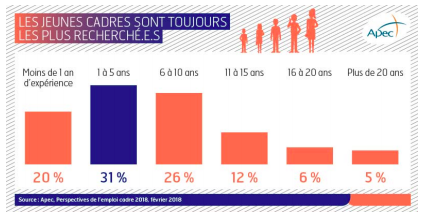 Ce sont toujours les cadres ayant 1 à 10 ans d’expérience qui seraient les plus recherchés par les recruteurs. Les débutants ayant moins d’un an d’expérience, quant à eux, commenceraient à profiter d’un marché de l’emploi cadre dynamique.
