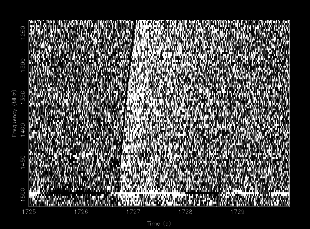 Les sursauts radio rapides sont des signaux radio extrêmement puissants (une énergie équivalent à ce qu’envoie notre Soleil en 10 000 ans) compacté en quelques millisecondes qui proviennent de sources extragalactiques inconnues. Leur origine lointaine est signée par ce qu’on appelle la « dispersion dans le plasma » ; plus une impulsion électromagnétique voyage longtemps dans l’espace, plus ses hautes et basses fréquences nous parviennent avec un décalage important en fonction de la matière qu’elle a rencontrée. Détecté seulement depuis 2007, avec une existence vraiment confirmée en 2014, les scientifiques estiment que leur source est toujours extrêmement localisée, de l’ordre de quelques centaines de kilomètres.